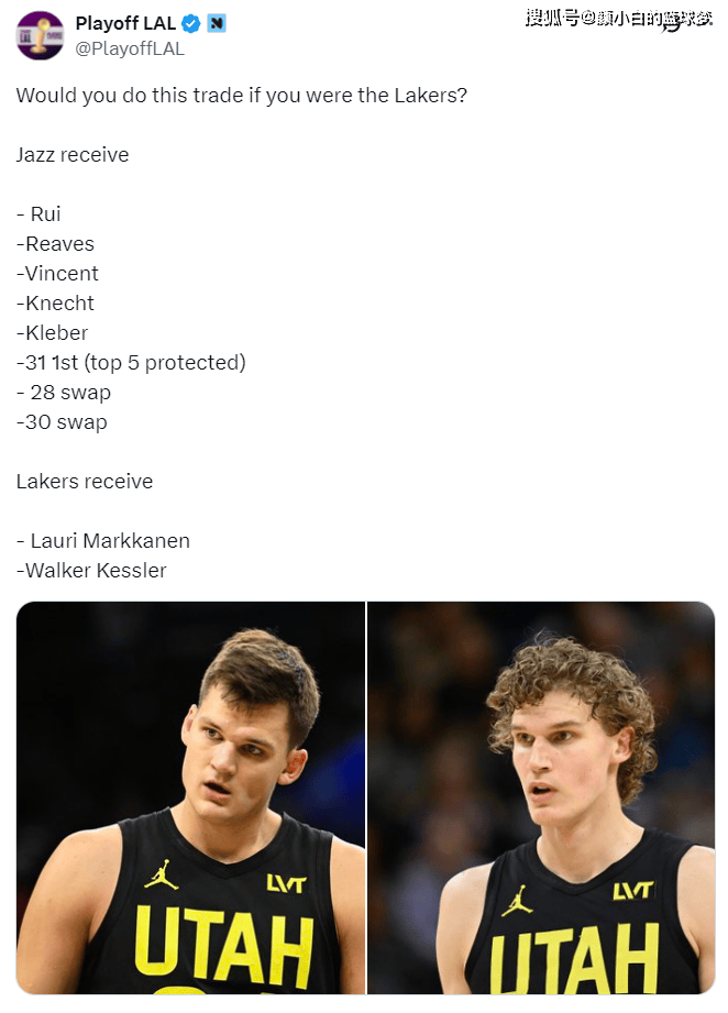 湖人媒体很希望球队能同时交易得到马卡+凯斯勒,湖媒Playoff LAL模拟交易方案,湖人送出里夫斯、八村垒、文森特、克内克特、克勒贝尔、2031年前五保护首轮、2028年首轮互换。2030年首轮互换得到凯斯勒、马尔卡宁。