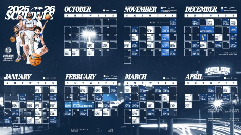 虎扑08月15日讯 今日NBA公布了所有球队的完整赛程,独行侠官方晒出了新赛季球队的完整赛程图。