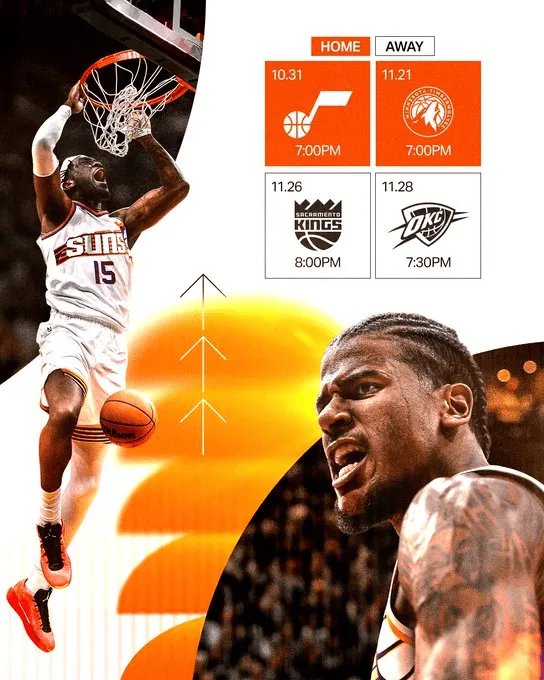 虎扑08月14日讯 今日,太阳官方更新X,晒出了球队在2025-26赛季NBA杯的赛程: