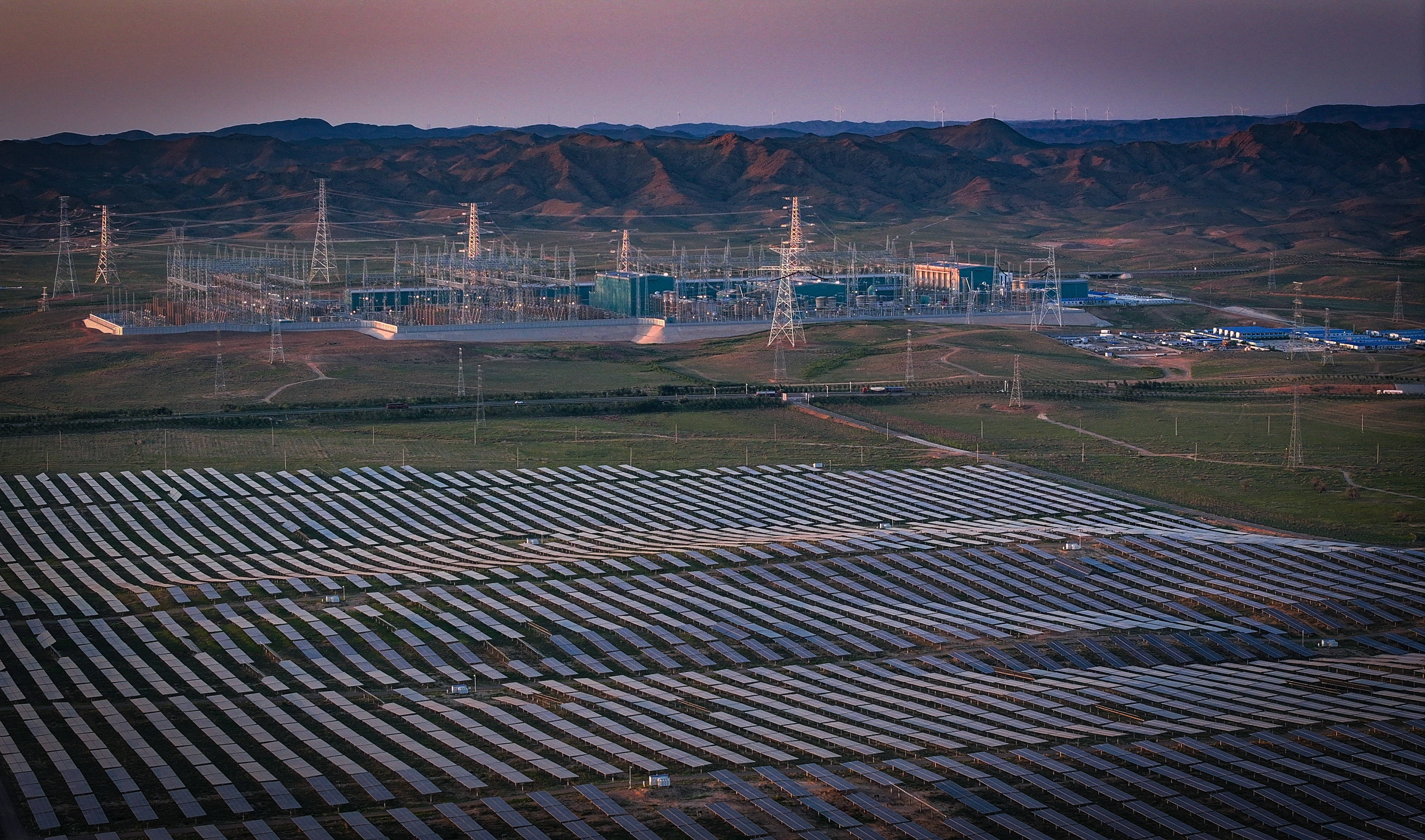(8月19日,无人机拍摄的“宁电入湘”工程宁夏中卫市中宁换流站及配套新能源项目。新华社图片)