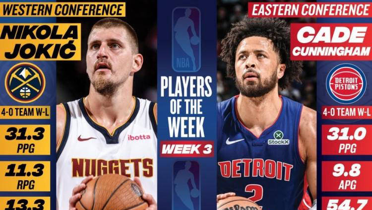 188金宝博,金宝博,188金宝博体育,188金宝博官方网站,188金宝博app下载,金宝博体育,金宝博网站,金宝博链接,188金宝博网址,188金宝博黑款,金宝博入口,金宝博登录,体育投注,足球投注今天,NBA官方宣布了第三周东西部周最佳球员名单。东部周最佳由底特律活塞后卫坎宁安获得,而西部则授予了掘金队的中锋约基奇。上周,坎宁安参加了4场比赛,3次砍下30+,3次实现两双数据,场均贡献31分9.8助攻,命中率高达54.7%,帮助球队取得了四连胜;约基奇同样打了4场比赛,3场30+,2次三双表现,场均得到31.3分11.3篮板13.3助攻,命中率和三分命中率分别高达70%和48%!无论是个人表现还是团队战绩,这两位球员的当选都是实至名归的。