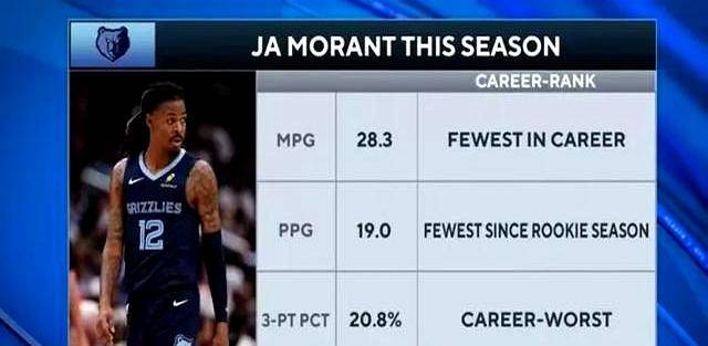 首先是伤病。 过去三个赛季,他总共只打了77场常规赛,频繁的伤病让他无法保持稳定的比赛状态。从膝盖问题到脚踝伤势,莫兰特似乎总是和病床作伴,球迷们甚至调侃他“进医院的次数比上场还多”。