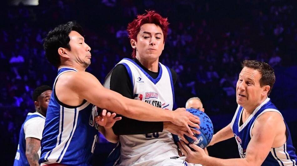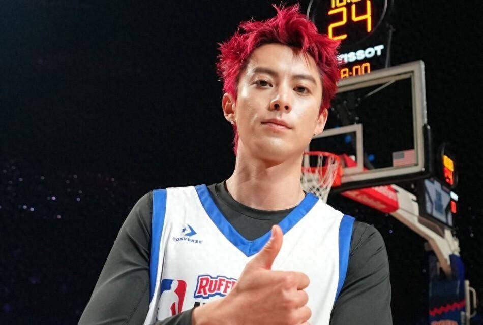 你知道吗,这已经不是他第一次站在这个舞台上了。这是第三次。2024年,他第一次来,替补上场21分钟,砍了18分,破了中国艺人在这个赛事的纪录,赛后还跟詹姆斯合了影,拿到了亲笔签名球衣。那时候所有人都说,这小伙子运气线年,他又来了,结果全场只打了10分钟,就拿了2分4个篮板。网上开始有声音了,说他就是来走个过场,去年的18分是昙花一现。到了2026年,就是今年,他染了一头红发,带着一把写着“大年初一”的中国风折扇来了。