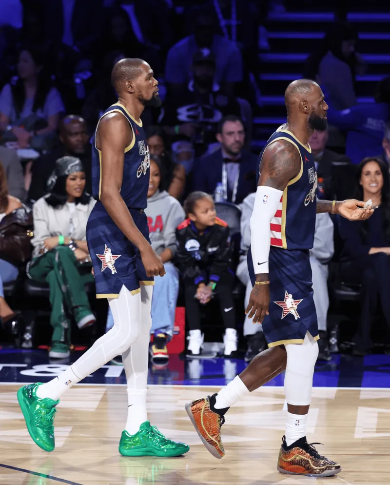 虎扑02月17日讯 NBA官方更新动态,晒出了勒布朗-詹姆斯与凯文-杜兰特在昨日全明星正赛上的同框照片。