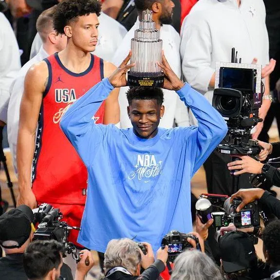 球员表现方面,维克托-文班亚马成为最大亮点,他在两节比赛中13投10中,高效砍下33分8篮板3盖帽,为比赛奠定了全力以赴的基调。安东尼-爱德华兹两场贡献32分9篮板3助攻,当选全明星赛MVP。科怀·莱昂纳德在第三场比赛中独得31分,成为美国条纹队取胜的关键。