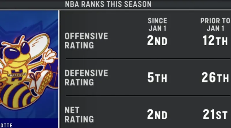 比赛第二节,转播画面给出一组数据,内容为新年前后(按美国当地时间计算)黄蜂的多项数据对比,内容如下: